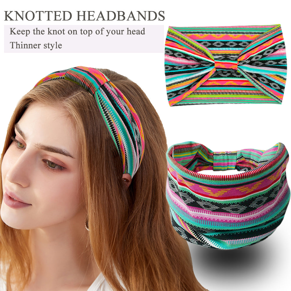 YONUF Wide Boho Headbands for Women Fashion Knotted Headband Yoga Workout African Head Wrap 4 Pack